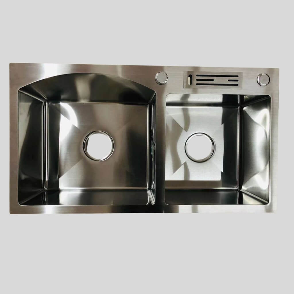 Pileta Doble de Cocina de Acero Inoxidable con Accesorios (800x450x200mm) – DD8045G/N