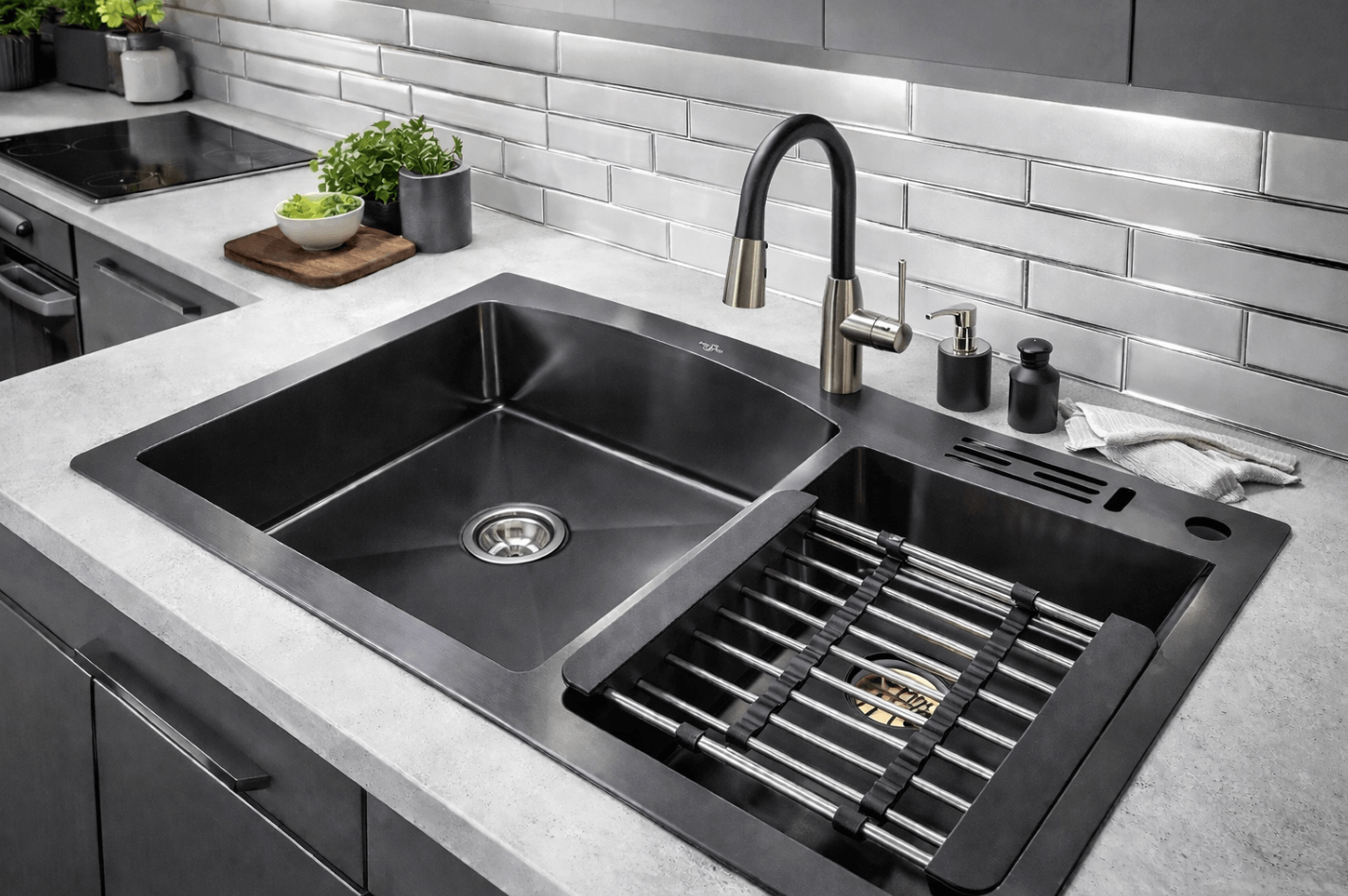 - Dispensador de jabón (del mismo acero, calidad y color que los fregaderos).